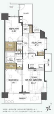 | 間取内訳/間取備考 | LDK11.5帖 / 洋6.0帖 / 洋6.0帖 / 洋4.5帖 / WIC有 |