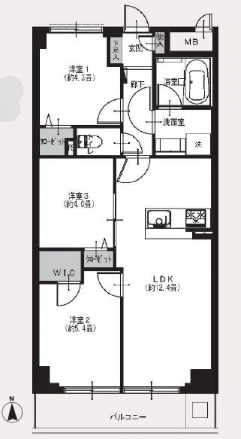 | 間取内訳/間取備考 | LDK12.4帖 / 洋5.4帖 / 洋4.3帖 / 洋4.0帖 / WIC付 |