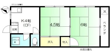 | 間取内訳/間取備考 | 和6.0帖 / 和4.5帖 / K4.0帖/ |